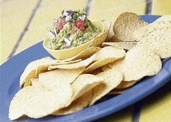 Guacamole made with avocado and served with chips