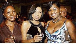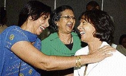 From left: Neryl Brydon, Joan Woodstock and Shirley Williams are having a grand time at Wednesday's launch of Edward Seaga's two books. - Winston Sill/Freelance Photographer