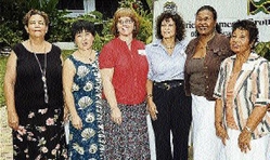 Members of the American Women's Group during their first meeting since the summer holidays, (from left) Jean Lowe, second vice-president for scholarships; Marcia Lee, membership chairperson; Jan Harmon, president; Jennifer Lim, first vice president programmes, Dawn Woodstock, immediate past president, Annie Lopez, secretary. - Ian Allen/Photographer