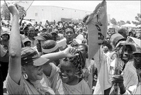 Jubilant PNP supporters outside the National Arena.