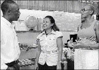 Consultant Social Officer Rohan Bell meets with Donna Lowe, chairman of the Board of Genesis Academy, and Maureen Webber (right), a member of the project and fundraising committee, while doing a tour of the school located on South Camp Road.