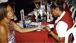 (4) Patrice Peralto (left) makes use of the medical tests conducted at the event.