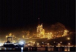 (4) Two ships docked nearby the Carib Cement plant cast a glorious reflection at night.