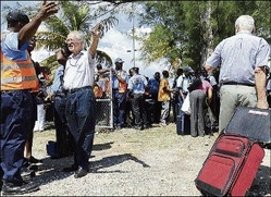 "Pandemonium! That's what it was. There was no order anywhere," said Ruth, a Trinidadian who was destined to leave the island early yesterday afternoon.