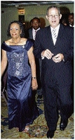June Spence-Jarrett (left), commissioner of corrections, and Prime Minister Bruce Golding arrive for the Department of Correctional Services awards dinner, held at the Hilton Kingston Jamaica hotel, New Kingston, on Tuesday. - Winston Sill/Freelance Photographer