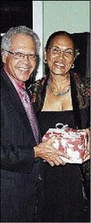 Dr Cecil Aird presents a gift to Dr Winsome Miller-Rowe for her efforts as coordinator of the the University of the West Indies Medical Class of 1969.