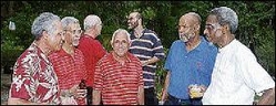From left: Drs Cecil Aird, Junior Dixon, Kenny Azan, host Ray Harvey and Tony Jackson at Harvey's Ironshore residence in Montego Bay for a brunch during the University of the West Indies' Medical Class of 1969's 40th reunion celebration in Montego Bay. - Contributed