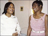 Lady Allen (left), wife of Governor General, Sir Patrick Allen, is welcomed to the luncheon by Carol Blair, administrative director of the Jamaica Cancer Society.