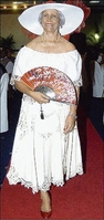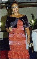 Left: A glowing breast cancer survivor, Ruby Martin, struts her stuff for guests at the luncheon.Right: Maureen Shaw seems ready for the upcoming festive season in this red gown.