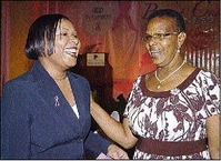 Chairman of Jamaica Reach to Recovery, Elite Sellers-Wright (right), a 15-year survivor of breast cancer, shares a laugh with Andrea Martin of the Jamaica National Building Society. - photos by Peta-Gaye Clachar/Photographer