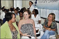 (From left) Marjorie Borough, Nora May Desnoes and Sharon McConnell could be discussing the art of giving at the launch of the Shaggy Foundation's Shaggy and Friends 2010 concert.