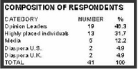 Forty-one persons (51.2 per cent) comprising opinion leaders, highly placed individuals, media personnel and persons within the United States and United Kingdom diaspora responded between October 3 and 19.
