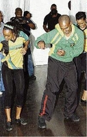 Michael Lee-Chin (centre) welcomes Asafa Powell (left) to the party.