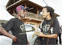 Chairman of the Local Forest Management Committee in Flagstaff, St James, Michael Grizzle (right), talks with community member, Robert Pearson, following the official opening of the Flagstaff Visitors Centre (in background).
