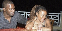 left: Dr Patrice Monthrope tries to get the attention of his wife, attorney, Damia Dawes.