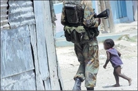 A little girl runs past a Jamaica Defence Force soldier during a joint police-military operation. Children in inner-city communities number highest among those who go missing. - File