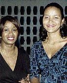 The lovely Marcia Henry (left) and Clover Moodie are out for the evening representing their company, First Global.