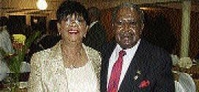 Sylvia Lyn of Lyn's Funeral Home and Hargreaves Memorial Hospital with businessman Derrick Sinclair following the Lay Magistrates' Awards dinner.