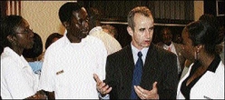 Sports physician and foundation fellow of the Faculty of Sport and Exercise Medicine, Dr David Hughes, seen in conversation with fourth-year medical students in the Faculty of Medical Sciences. - Nathaniel Stewart/Freelance Photographer