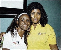 Intralot employees Kemasha Walton (left) and Jessica Gayle are only too happy to represent their brand, as Supreme Ventures Betting Crew host JustBet first Media Lyme at the Acropolis, Barbican Centre, last Thursday. - Winston Sill/Freelance Photographer