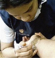 An artist applies henna pattern to the wrist. - Contributed