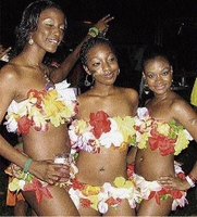 Girls flaunt their beautiful Hawaiian-themed costumes at a luau. - Contributed