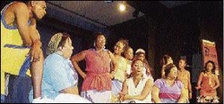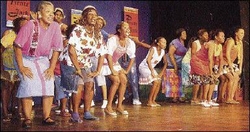 The full company performing the Kumina song 'Build up the Fire' in the finalé of this year's National Pantomine, 'Pirate Jack'.