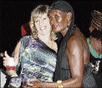Goldeneye's Kathy Snipper (left) and the talented 007 Grace Jones at the Usain Bolt 9:58 SuperParty at Richmond Estate in St Ann last Saturday night. - photo by Janet Silvera