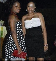 Jodex Williams (left) and Kadeen Simpson pose for the cameras at Genus Pharmacy's Janet Genus' 50th birthday party. - photo by Janet Silvera