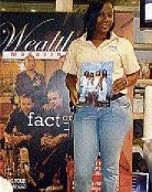 Jodi-Ann of Creative Media and Events displays the second issue of Wealth Magazine, a publication of Creative Media and Events.