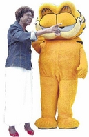 Lorna Golding chills out with Garfield during the prime minister's Christmas treat for children at Vale Royal in St Andrew on Wednesday.