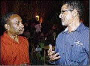 Talking business: Jamaica Chamber of Commerce President Milton Samuda (left) listens keenly to Sterling Asset Management boss Charles Ross.