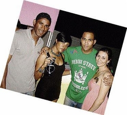 From left: Khari Stephenson, Renee Wong, assistant brand manager for Red Stripe,Alex Blake and Tricia Blake enjoy the happenings at Karma, Colour Craze, at the Liguanea Club on Sunday night December 20. Contributed photos