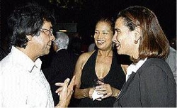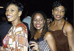 Guardsman chief, Kenny Benjamin, chills with Dawn Mitchell (centre) and Renée McCallum at the LIME Jamaica reception. - Winston Sill/Freelance Photographer
