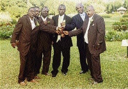 Anthony Saunders (third right), with his groomsmen from left: Barrington Saunders, Daniel Saunders, Florizle Saunders, Sandley James and Conray Saunders.