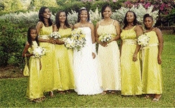 Norda Saunders, surrounded by her beautiful bridesmaids, from left: Temera Saunders, Jheneall Curtis, Sharon James, Hyacinth Reynolds, Nicole James and Vanessa Saunders. - Contributed photos