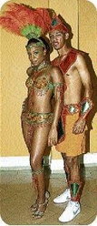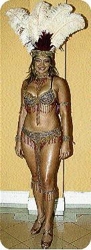 Left: A beautiful combination of vibrant shades of orange and green. Models Kandice Matthews and Jonathan Cabralis show off, Acropolis-sponsored costume. Right: Fallon Lutchmansingh is picture perfect in this Pure Country-sponsored costume. She was one of the models at Wednesday's Bacchanal Jamaica 2010 launch.