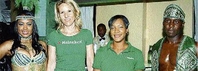 Frederique Asberg (second left), Heineken's country manager, and Kerri-Ann McKenzie (second right), Heineken's brand manager, are sandwiched by models Alexis Nunes and Anthony Grant who are wearing costumes sponsored by the company.