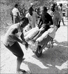 He helped me gather my things and drove me to the Bustamante Hospital for Children where I met eight doctors with whom I'd be travelling. They were Dr Shane Alexis, Dr Arlington Lightbourne, Dr Adriana Hamilton, Dr Donna Braham, Dr Khia Duncan, Dr Tanya Douglas, Dr Naomi Swaby and Dr Vincent Riley. From the children's hospital, we drove to the Jamaica Defence Force (JDF) base on South Camp Road where we met with soldiers and Ministry of Health doctors, nurses and officials. All of us left in a convoy with the military and headed for the Norman Manley International Airport.