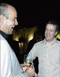 KNOCKING 'HEADS': Ritz-Carlton's Bernd Kuhlen (left) has a hearty laugh with his guest Mark Linehan of Digicel during Saturday night's appreciation reception for clients at the historic Devon House in St Andrew. - Winston Sill/Freelance Photographer.