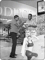 Promoter Cameisha Russell is caught explaining the Nestlé Fitness Cereal promotion to a shopper at the product's sampling station recently at the Loshusan Supermarket, Barbican, during the launch of the product. With each pack of Nestlé Fitness Cereal bought at particular outlets, consumers will receive one of two exercise videos Body Vive or Body Balance. The Body Vive video (as seen in photo) was also shown on television at the promotion
