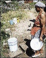 Plastic bottles, buckets and cooking oil bottles are some of the containers used by persons to get water. A woman wheeled in a barrow filled with buckets and Martha Aikman stood by the standpipe, waiting for her turn.