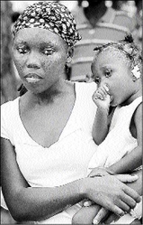 A Haitian woman waits with her child to collect supplies from a Jamaica and United Nations team, in the quake-battered capital, Port-au-Prince, last month. - Ian Allen/Photographer
