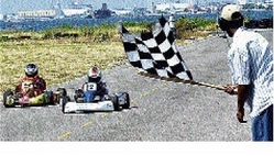 Defending Rotax Junior champion, Matthew Williams, produced a late burst and crossed the finishing line in a flash to pip Colin Daley Jr on the line in what was the most exciting showdown at yesterday's go-kart meet held at the Palisadoes International Raceway, Kingston...