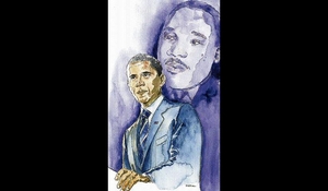 Portrait of US President-elect Barack Obama shadowed by the memory of Dr Martin Luther King Jr.