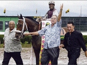 IN A gutsy display, AD INFINITUM, responding to a brilliant ride from Dane Nelson, lowered the colours of Triple Crown winner and 4-5 favourite ALSAFRA to win the 30th running of the CTL Superstakes before a bumper crowd at muddy Caymanas Park yesterday.