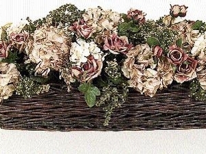 Dried roses, kept whole, look great as an arrangement in a wicker basket